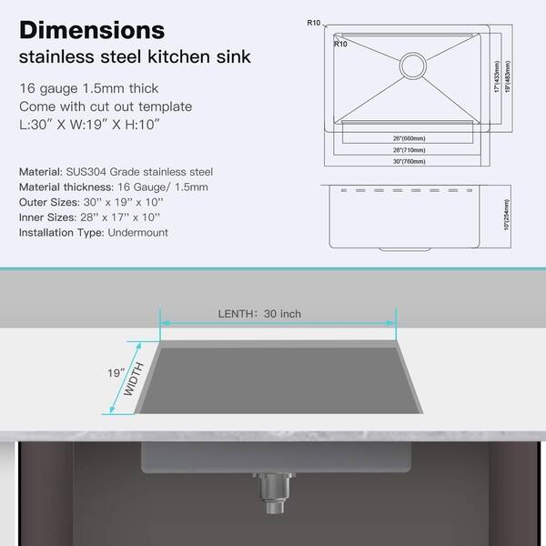 Another important aspect refers to the fact that the sink is designed with 3 1/2 (89mm) strainer holes, 1 overflow and no faucet hole. Compare your measurements to the dimensions listed on the sinks in the store. Kitchen sinks come in numerous basin configurations along with installation methods.