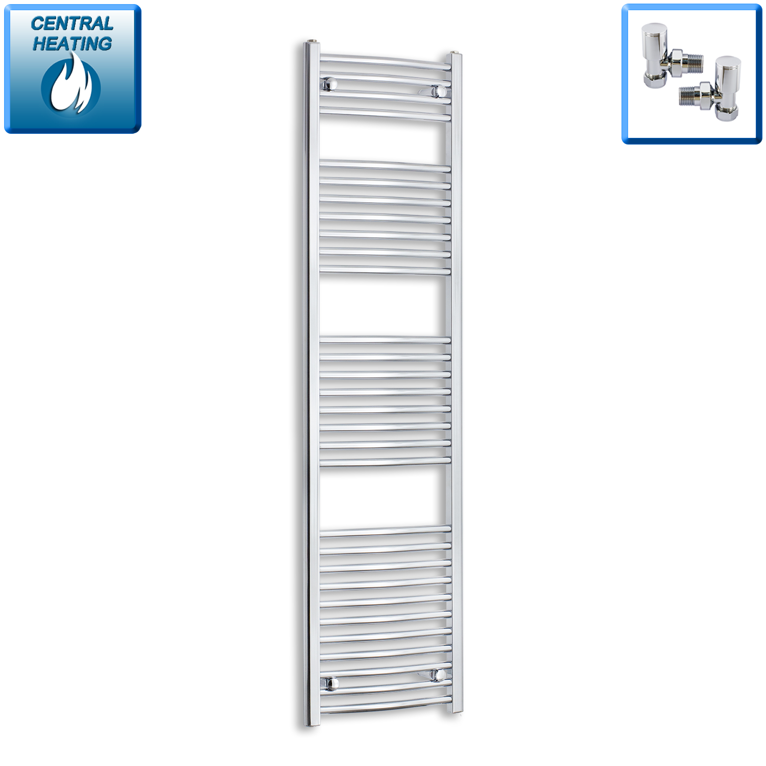 450mm wide 1200mm high white designer heated towel rail radiator bath or kitchen. Electric towel rails are either plugged in to the wall. Collection of straight and curved towel warmer.