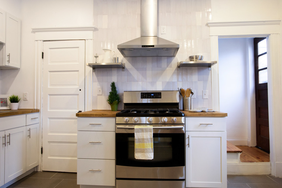 Modern White Kitchen With Subway Tiles